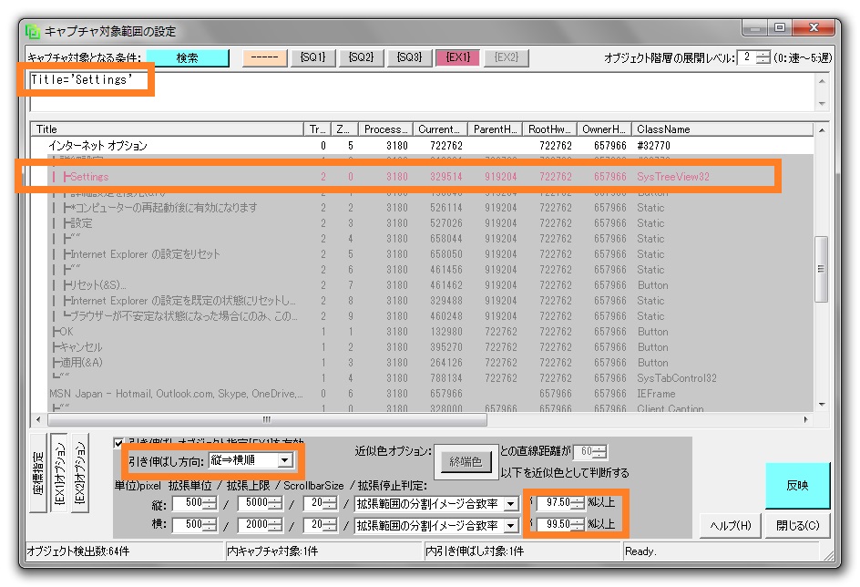 actCapture - チュートリアル(応用編) - IEオプション詳細設定をキャプチャする